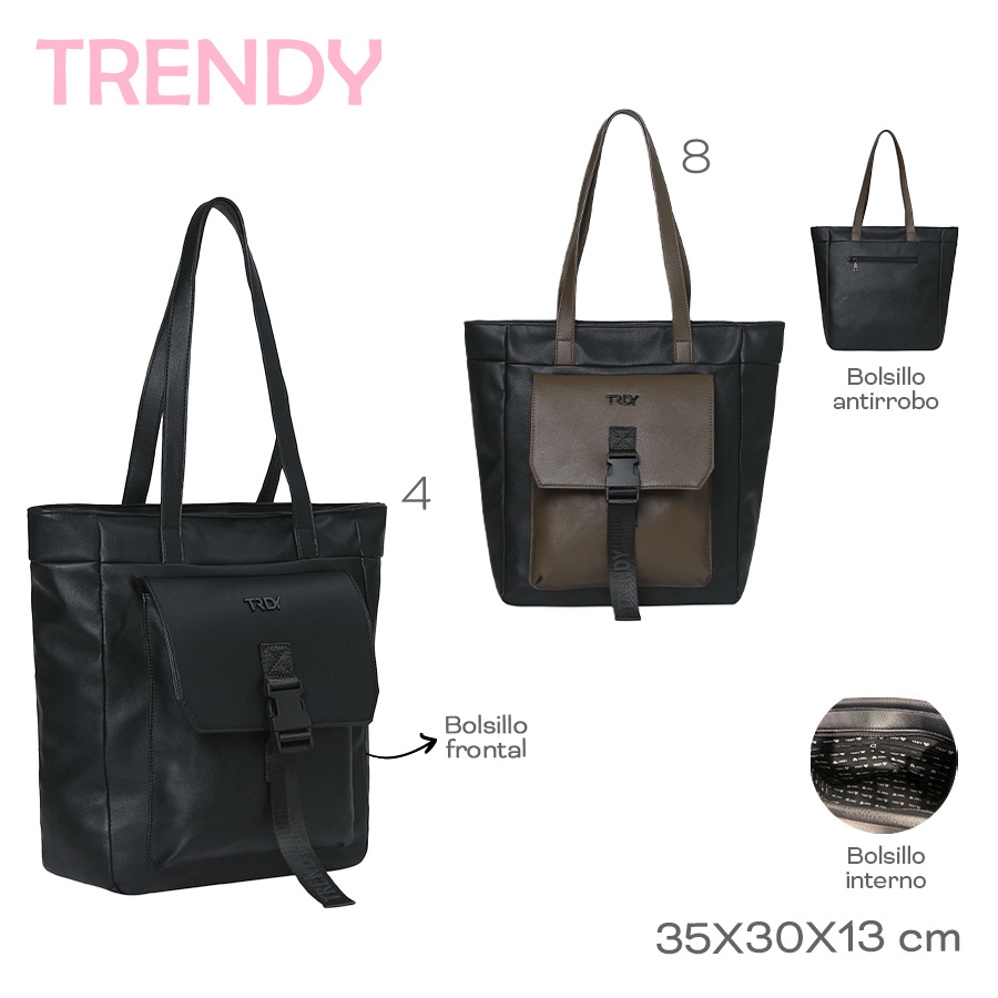 Descripción: CARTERA ANTIRROBO MUJER TRENDY ECO CUERO. · Amplio compartimiento principal. · Confeccionada en Eco Cuero. · Un bolsillo posterior antirrobo. Cartera de Mujer Trendy - Amplio compartimiento Principal - Interior forrado - Cierre Reforzado ¡Lleva todas tus cosas protegidas! La más Segura, Ultra Liviana y Resistente - Diseño cómodo y a la moda, elegante ideal para tus salidas o paseos. · Cartera de Mujer Antirrobo Trendy. · Un bolsillo interno con cierre. · Bolsillo frontal con solapa y broche de seguridad. · Interior forrado con el logo de la marca. · Dos asas de transporte. · Cierres reforzados. · Zippers metálicos. · Resistente y liviana. · Logo frontal Trendy. · Diseño cómodo y a la moda. · Elegante, ideal para tus salidas o paseos. · Medidas: Alto 35cm x Ancho 30cm x Prof. 13cm.