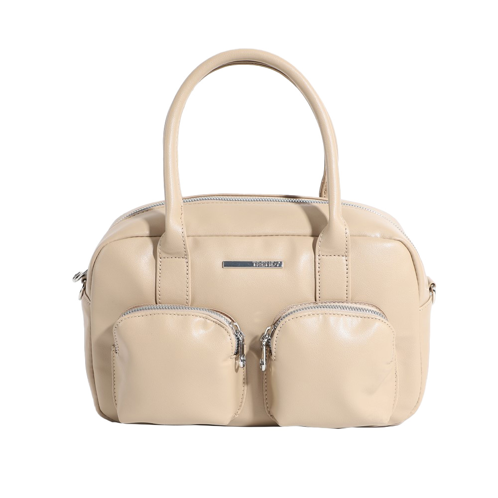 Descripción: Material: 100% Cuero Pu. Medidas: Alto 18 X ancho 29 X profundidad 11cm. *Tira extraible y ajustable de hasta 123cm. *Dos asas de transporte. *Dos bolsillos frontales. *Un bolsillo posterior. *Tres bolsillos internos. *Forrado en su interior con el logo de la marca.