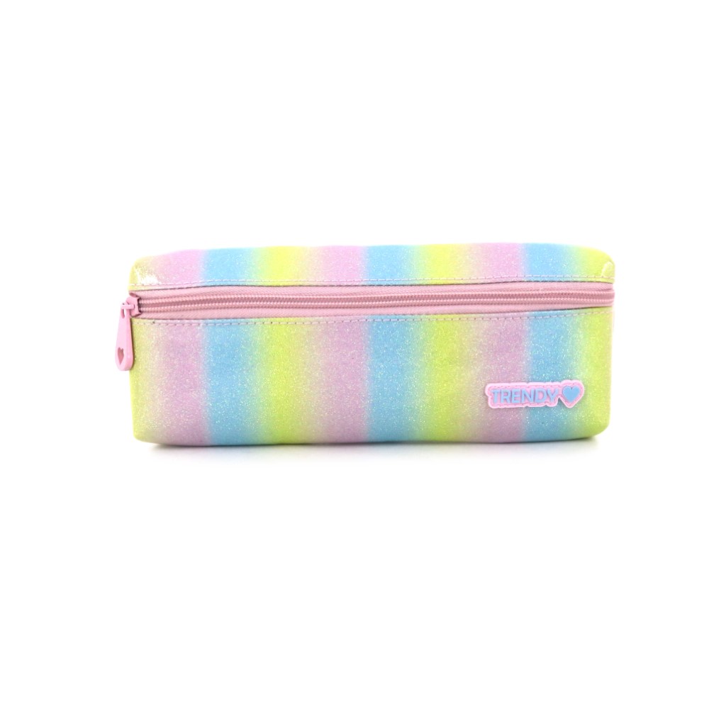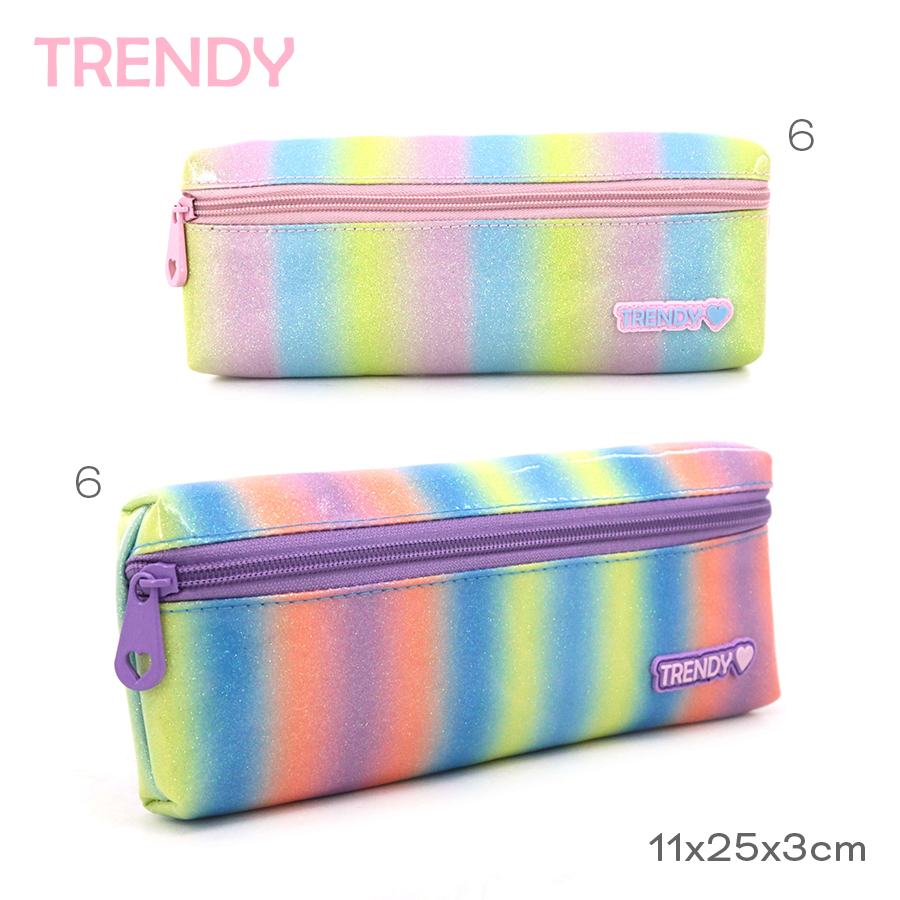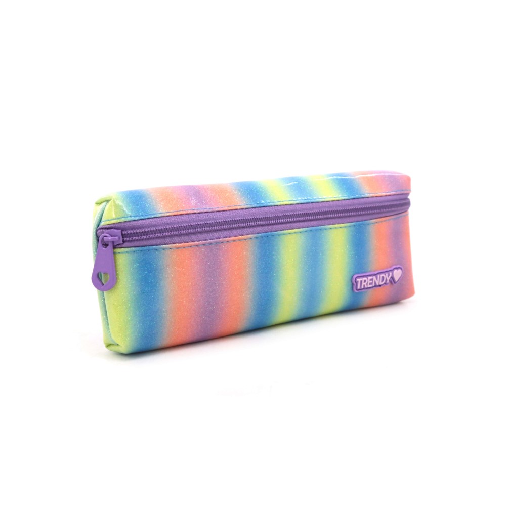Descripción: Cartuchera Trendy 17524 Color: Arcoiris Rosa y Arcoiris Violeta. Medidas: 11,5cm de alto x 25cm de ancho x 2cm de profundidad. Material: 100% Poliester.