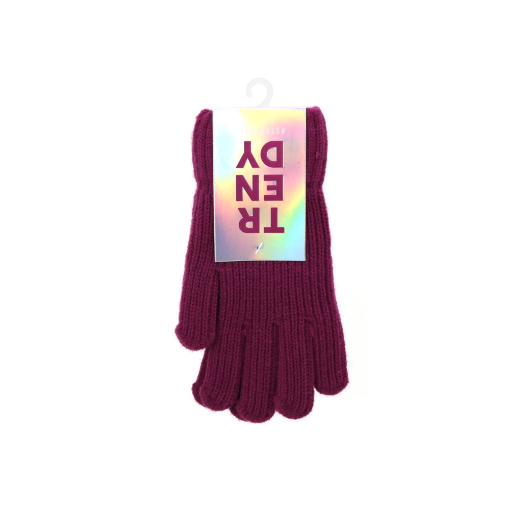Descripción: - Marca: Trendy. - Modelo: 16909. - Composición: Poliéster + Elastano. - Talle único. - Dimensiones: largo total 21 cm x ancho total 10 cm. Guantes tejidos Trendy lisos, ideales para el invierno, garantizan calidez y comodidad, súper resistentes para el uso diario. Vienen en talle único para cualquier tamaño de mano de adulto. Su diseño liso y elegante lo convierte en un accesorio versátil que combina fácilmente con cualquier outfit.