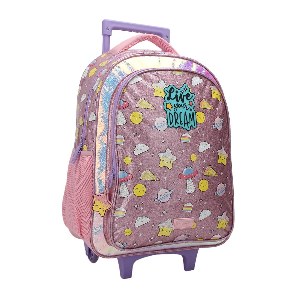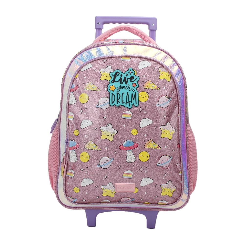 Descripción: · Dos Amplias Divisiones con Cierre. · Compartimientos frontales con Cierres. · Ruedas dobles de Silicona. Diseño Escolar confeccionado en materiales de primera calidad. Modelo Ultra Liviano y fácil de transportar - Tiras acolchadas para el cuidado los hombros - Confeccionado en Tela reforzada Anti Desgarre ¡Ideal para la escuela, viajes o paseos! Lleva tus cosas protegidas. Estampado frontal con Diseño Infantil que hacen juego con la cartuchera. · Tiras Acolchadas Air Mesh. · Bolsillos Laterales de Red. · Asa superior Reforzadas. · Espalda Acolchada. · Material Reforzado Anti desgarre. · Manija regulable en Altura para usar como Carro. · Base rígida. · Interior Forrado. · Costuras y cierres reforzados. · Medidas 28033: 46cm alto x 34cm ancho x 14cm profundidad.