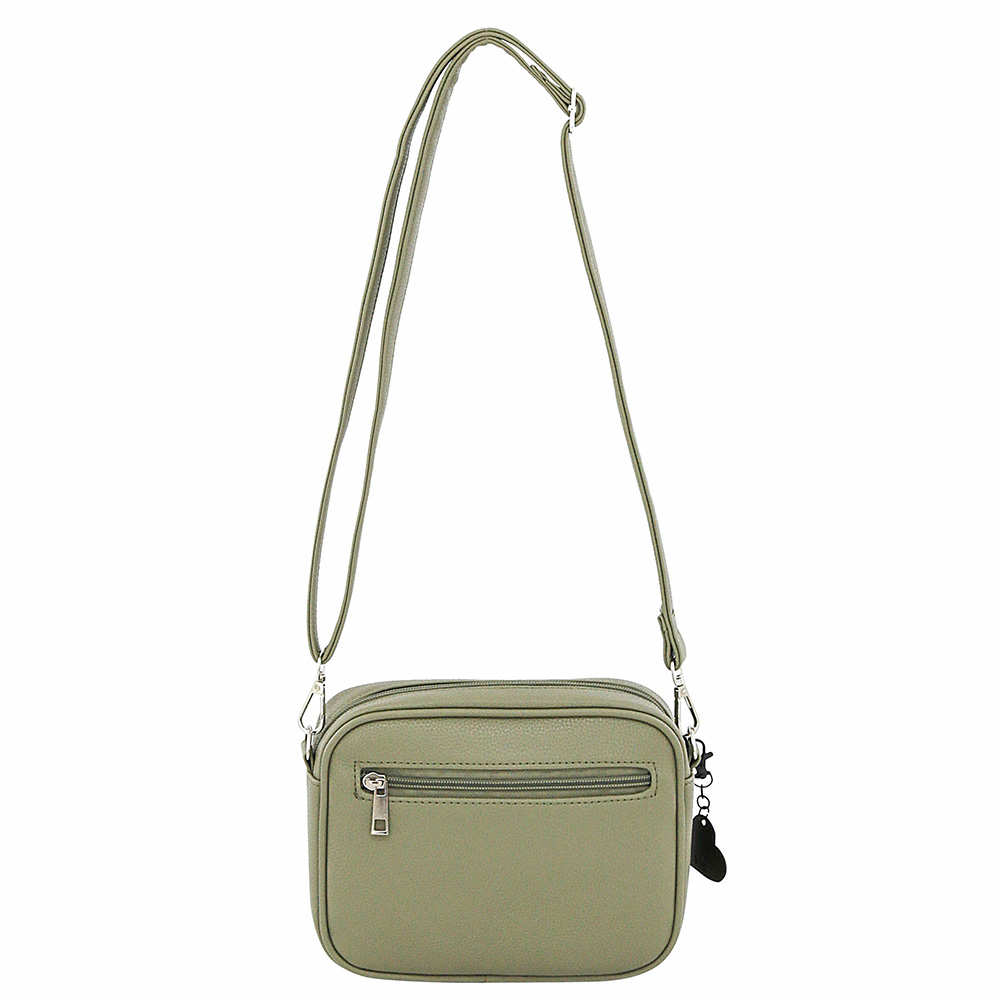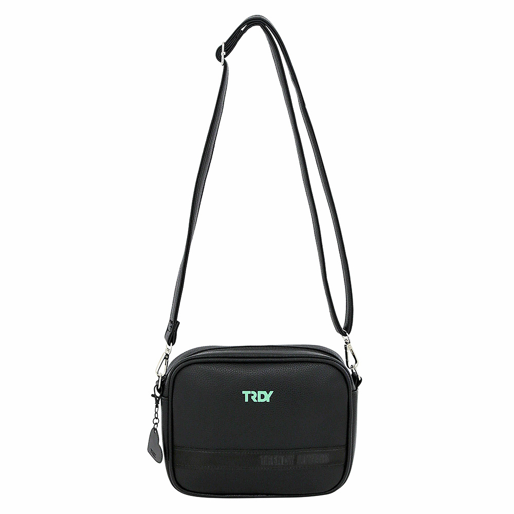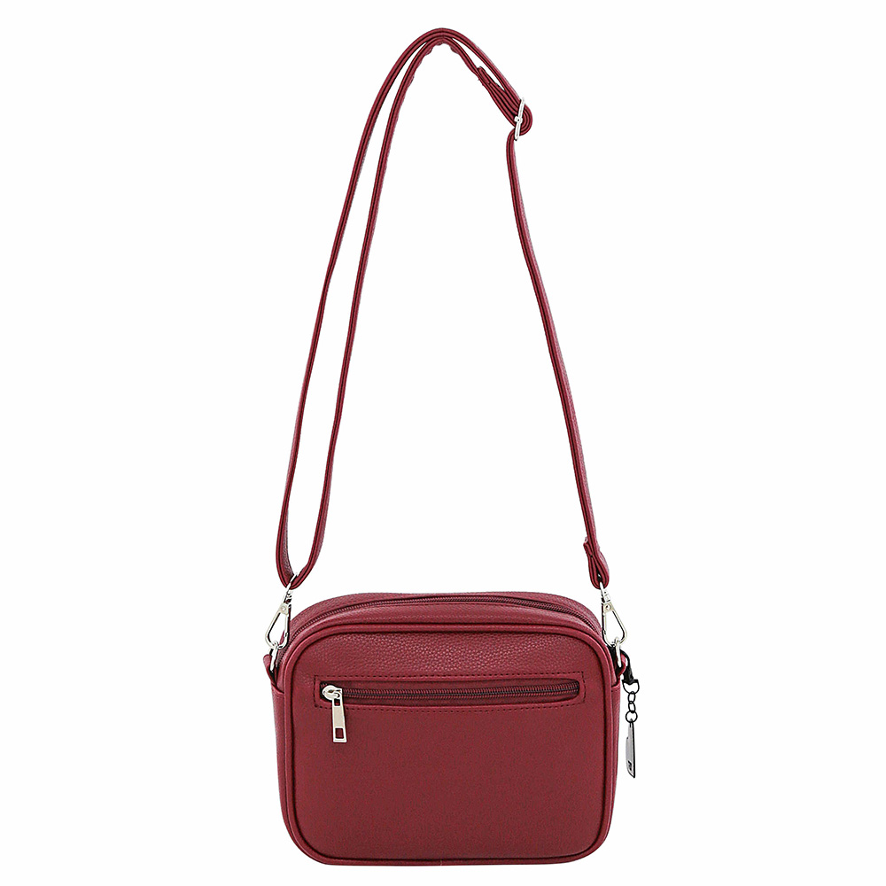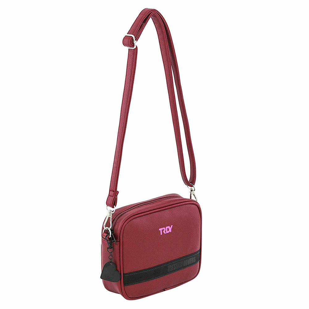 Descripción: Medidas: 16 cm Alto x 20,5 cm Ancho x 5 cm Profundidad. Material: 100% PU. Contiene: Un bolsillo principal, un bolsillo posterior, tira de transporte ajustable. Incluye un llavero.