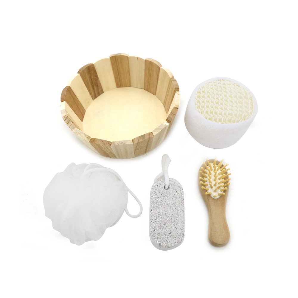 Cepillo corporal: Mango de madera con grip de goma antideslizante y cerdas suaves, ideal para zonas delicadas como brazos y piernas.