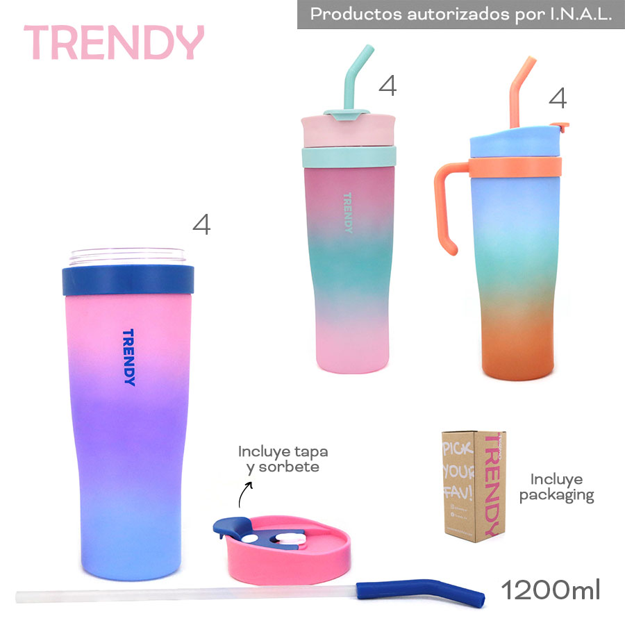 Descripción: Vaso Trendy gr con sorbete, tapa y manija 1200ml, diseño nuevo moderno y practico Fabricado con materiales de alta calidad, este vaso está hecho de 100% policarbonato, lo que le otorga resistencia y durabilidad. Su interior transparente permite ver el contenido, añadiendo un toque visual atractivo. La tapa, elaborada en 100% acrilonitrilo estireno, asegura un cierre hermético para evitar derrames. Incluye un sorbete de 100% polipropileno, cómodo y reutilizable, que te permite disfrutar de tus bebidas de manera práctica. Además, la base del sorbete y el burlete son 100% de silicona, lo que proporciona un sellado adicional y evita filtraciones. Ideal para llevar contigo a donde vayas, este vaso es la elección perfecta para quienes buscan funcionalidad y estilo en un solo producto. ¡Mantén tus bebidas frías y frescas con este vaso imprescindible!