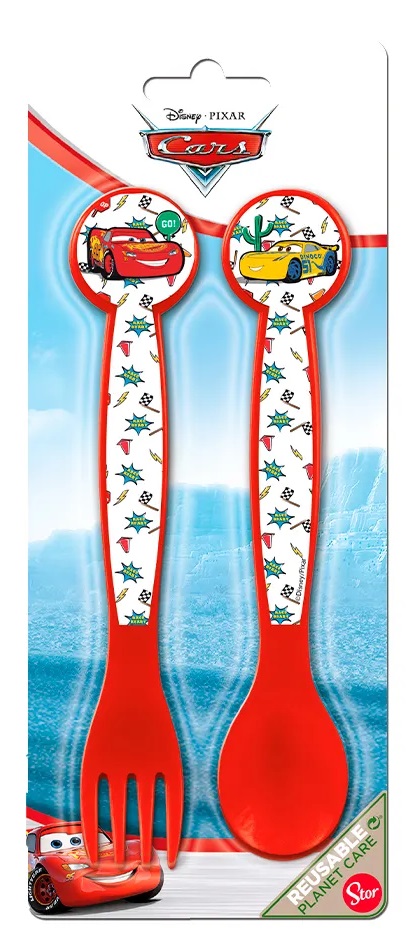 Descripción: Cubiertos Pack X2 infantil. Conjunto compuesto por cuchara y tenedor para que los más pequeños de la casa vayan aprendiendo a utilizar los cubiertos de adulto a la hora de comer de forma divertida y segura, gracias a su forma redondeada. Todos los productos de la marca Stor son reutilizables, libres de BPA.